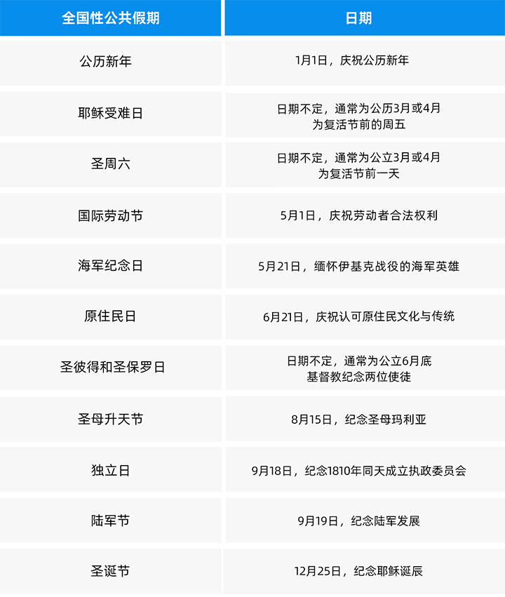 智利假期休假